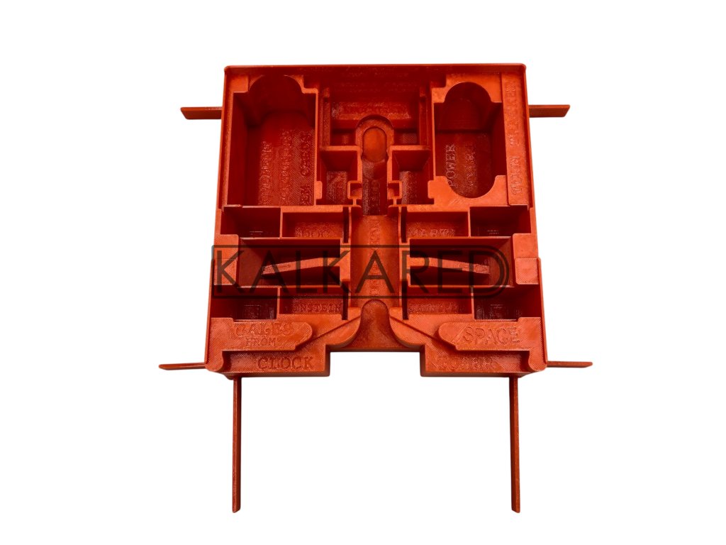 - Materiál: PETG (oproti typickému PLA nepodléhá UV záření, křehnutí a má vyšší pevnost). Tištěno Oranžovou barvou.