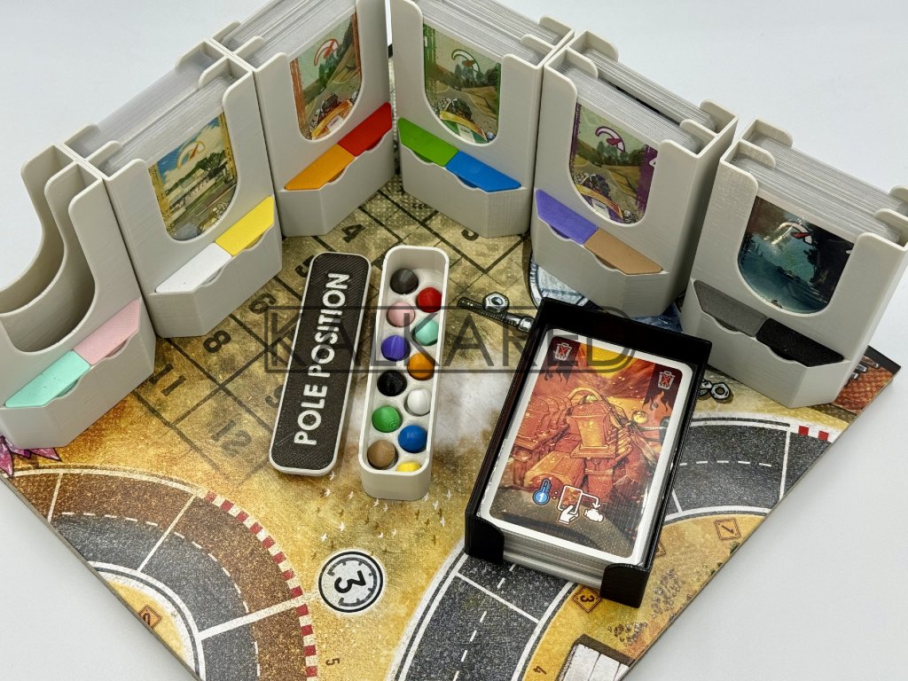 - Součástí insertu je pomůcka, která určí pořadí vozidel na startovní čáře. Stačí vhodit kuličky, zamíchat a otevřít víčko