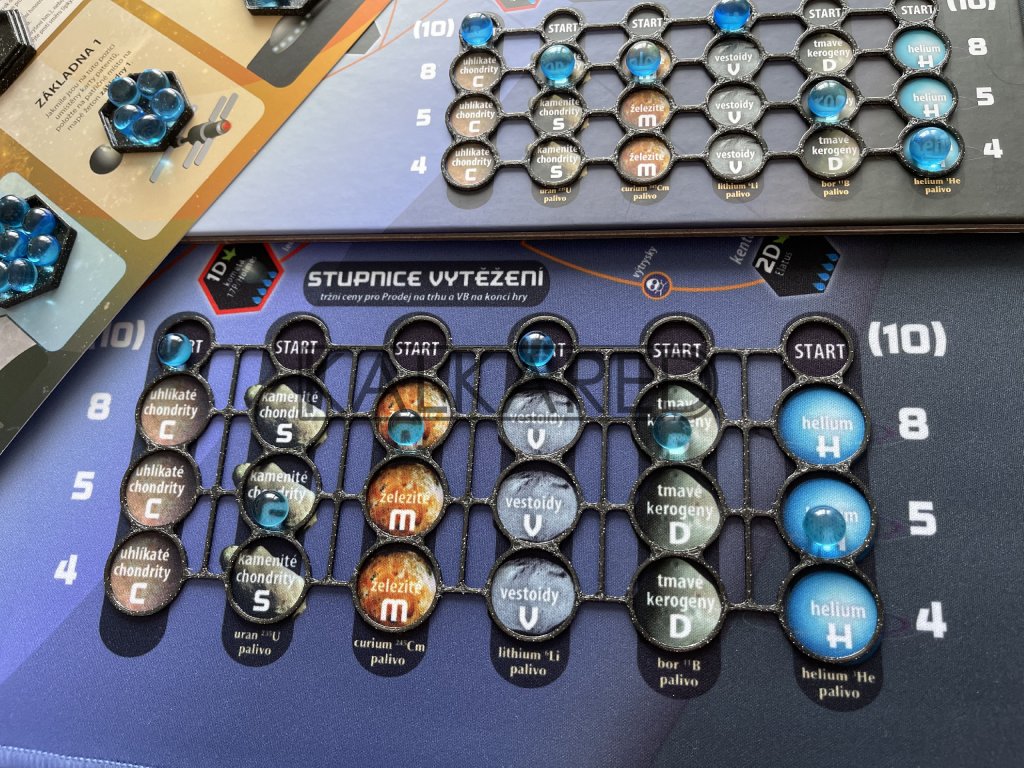 - Na výběr jsou také pořadače na držení Aqua žetonů na ukazateli tržní hodnoty ve variantě pro kartonovou desku, či playmat.