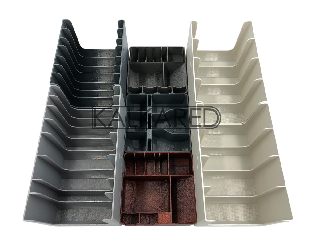 - Insert se skládá z celkem 21 kusů menších krabiček a pořadačů.