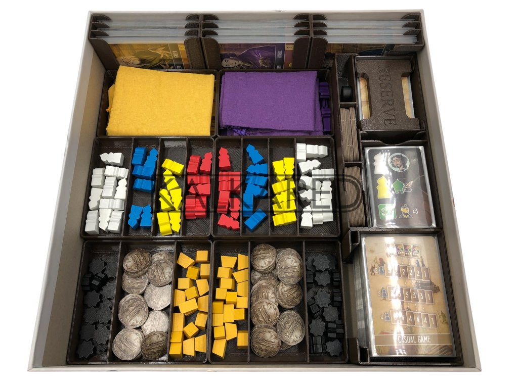 - Desku pro sólo hru lze skladovat buď na dně krabice, nebo na krabičkách hráčů podle toho, jestli preferujete sólo hraní, či ne