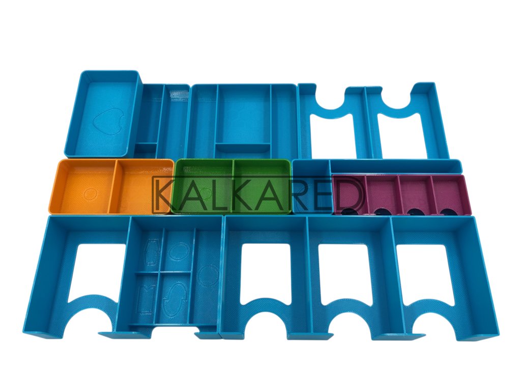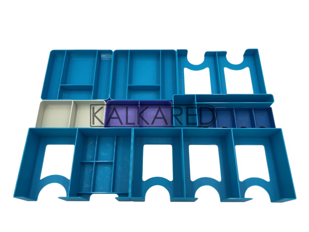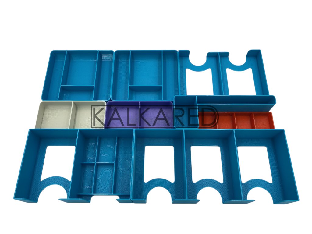 - Insert se skládá z celkem 15 kusů menších krabiček a pořadačů.