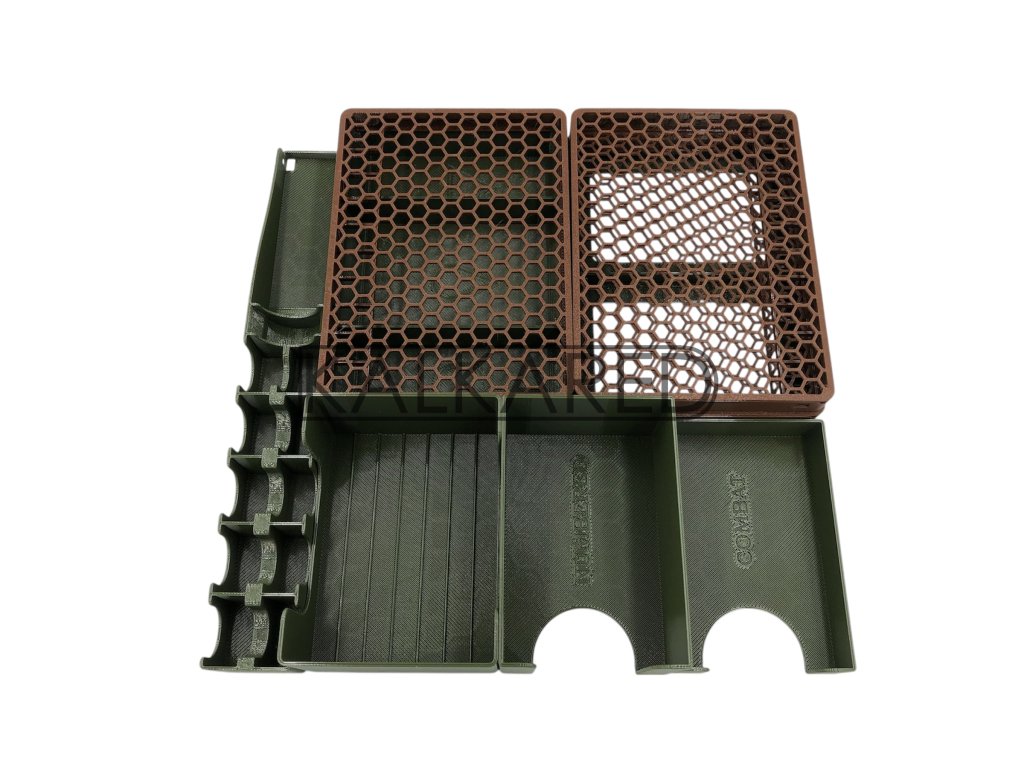 - 1 x Pořadač pro žetony stavu, surovin, přehozu a Mini dice tower