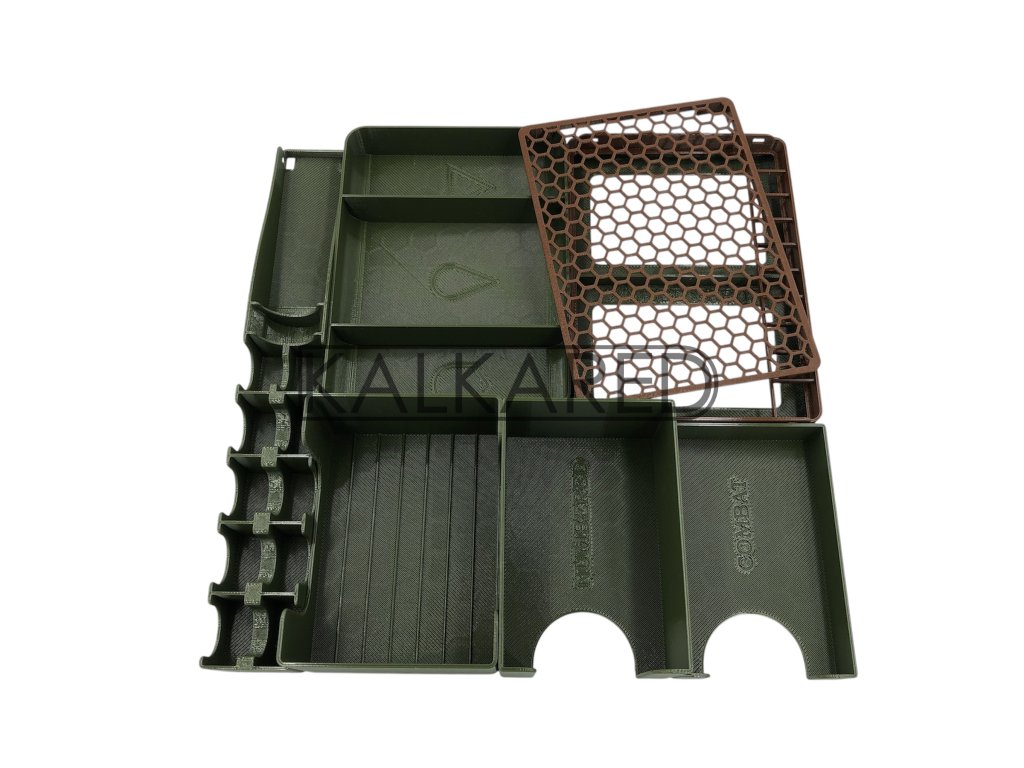 - Insert se skládá z celkem 19 kusů menších krabiček a pořadačů.