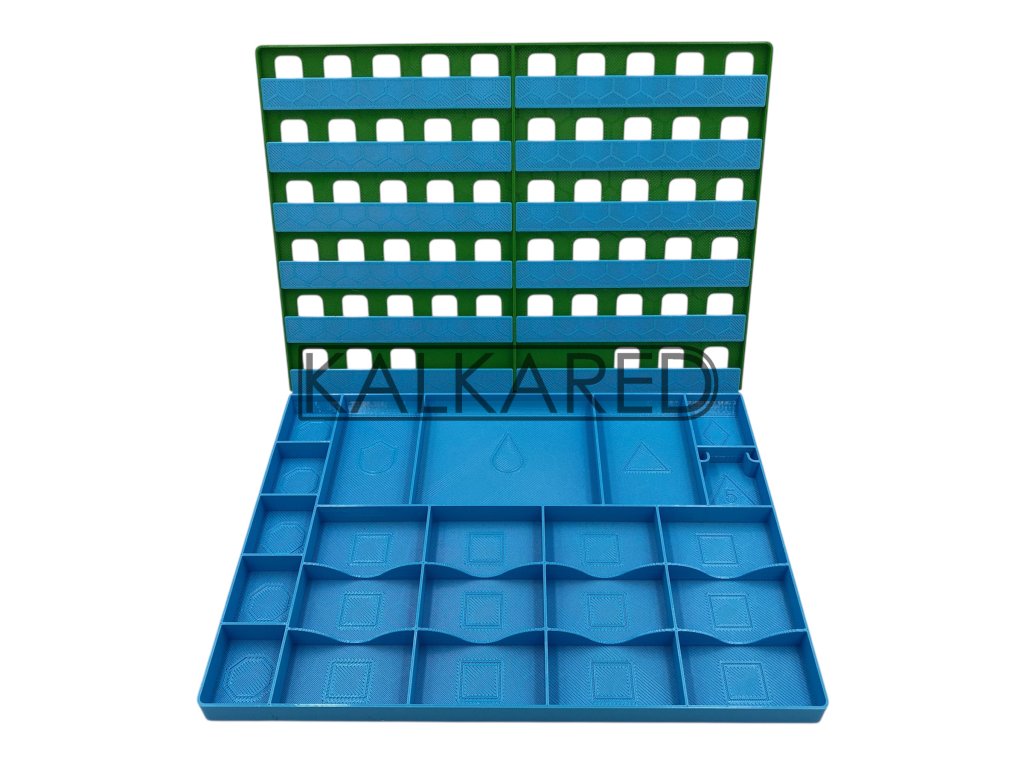 - Insert se skládá z celkem 37 kusů menších krabiček a pořadačů.