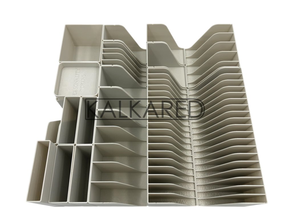 - Insert se skládá z celkem 40 kusů menších krabiček a pořadačů