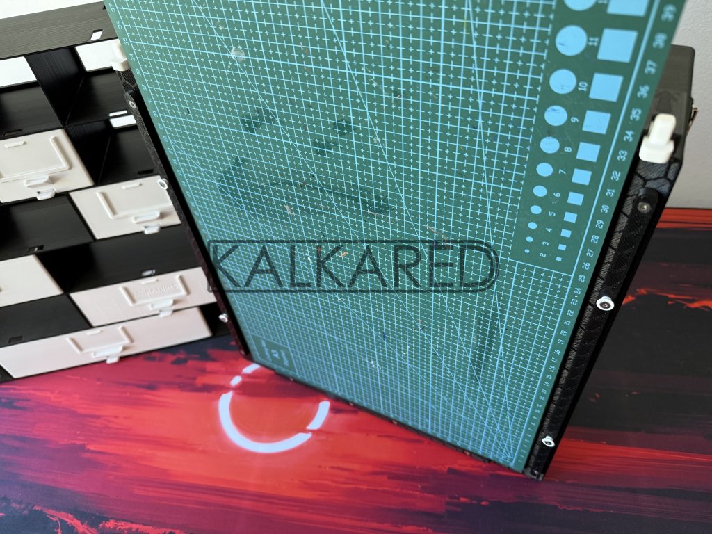 - Umožňuje na zádech PAINTBOXu základního kufru uložit odnímatelnou polici a řezací podložku A4 (300x220 mm), nebo A3 (450x300 mm)