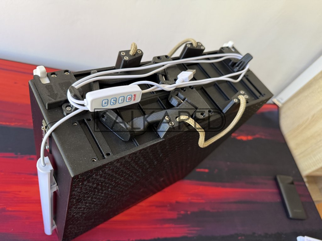 - Součástí modulu jsou i dva kovové kroužky, které lze umístit na bok těla základního kufru, například k pantům, a na ně si odkládat světelnou zářivku během skladování, či transportu.