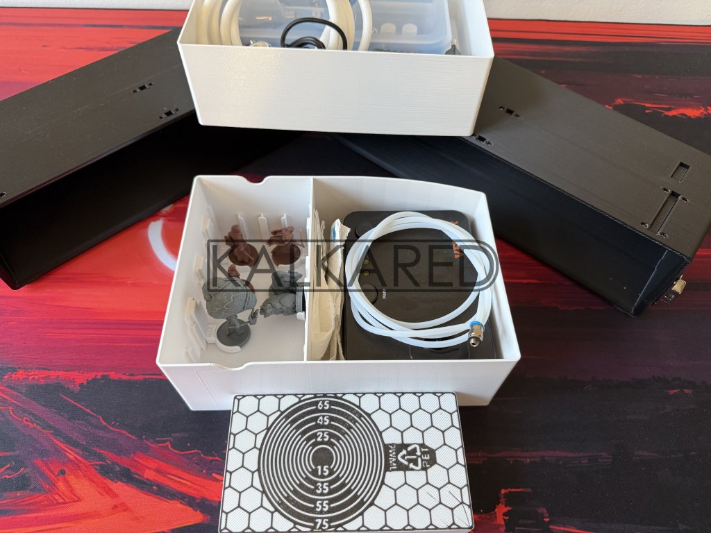 - + 2 Krabičky - K podstavci navíc obdržíte 2 krabičky, do kterých si můžete uložit mokrou paletu, Airbrush i s kompresorem (pokud máte malý hobby)