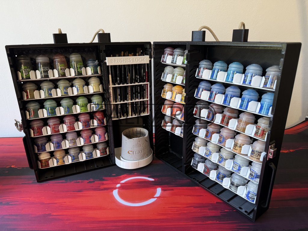 - Citadel/P3 - pojme až 72 Citadel barev (13 x 24 ml, 59 x 12 ml), nebo 59 x 18 ml P3 lahviček